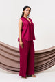 A striking ruby red co-ord set that blends ease with elegance. The relaxed-fit kurta features a split neckline and an interplay of textures—subtle geometric embroidery on the yoke transitioning into intricate floral sequin work on the lower panel and sleeves. The silhouette drapes gracefully with side slits for added movement. Paired with coordinated straight-cut trousers adorned in matching sequin embroidery, this set is ideal for intimate festive occasions or elegant evening gatherings. A perfect balance of shimmer and structure.