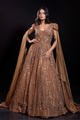 Organza gown with all-over tonal resham and zardozi twines accentuated with draped sleeves.